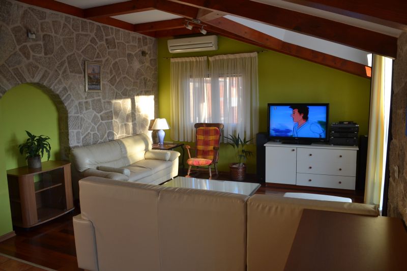 | APP 2+2 ´2´ (103100902) Umístění: Přízemí Počet místností: 2 Počet osob: max. 4 | | Ložnice: manželská postel, skříň | | Obývací pokoj s kuchyňským koutem: pohovka na rozložení pro 2 osoby, TV/SAT, klimatizace | | Kuchyňské vybavení: plynový i elektrický sporák, trouba, lednička s mrazákem, rychlovarná konvice, stůl, 4x židle | | Koupelna: sprchový kout, WC | | Terasa: posezení pro 4 osoby Výhled: zahrada | | Klimatizace: ano (5 € / den) Internet: ano (zdarma)