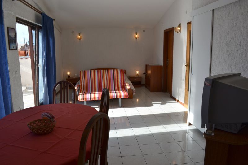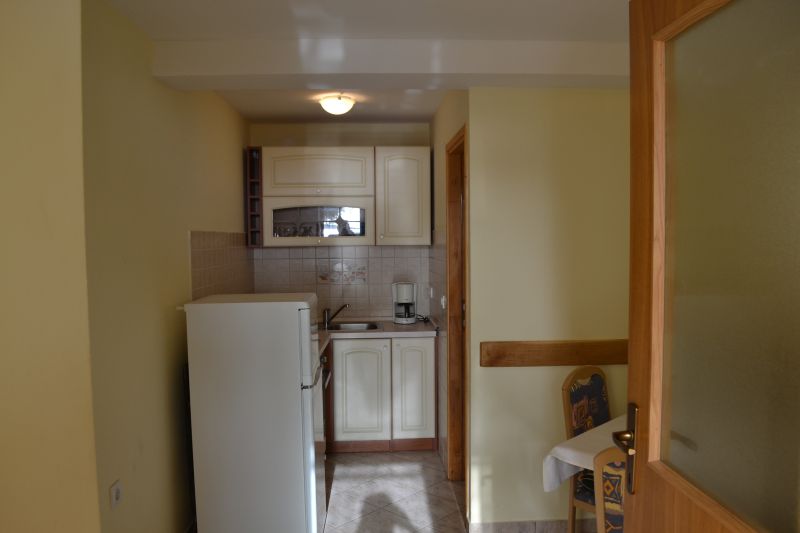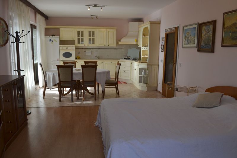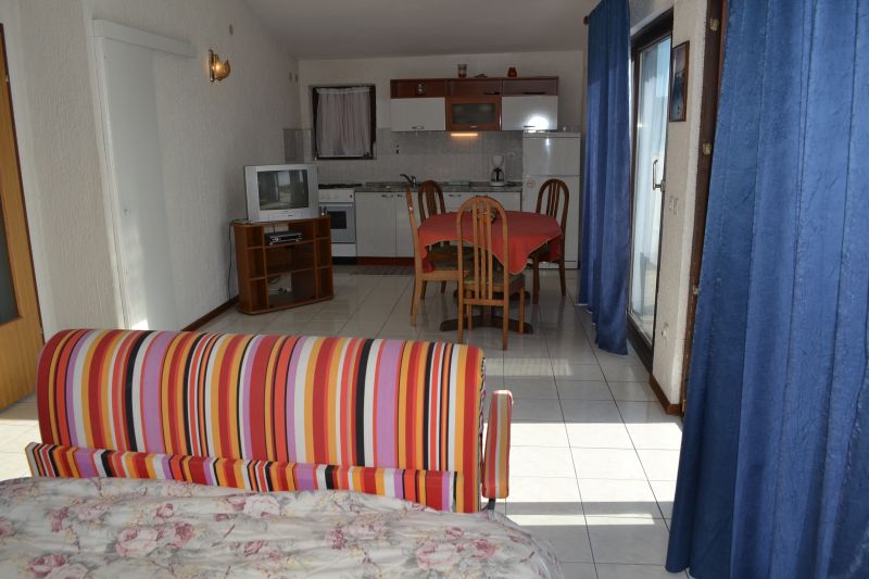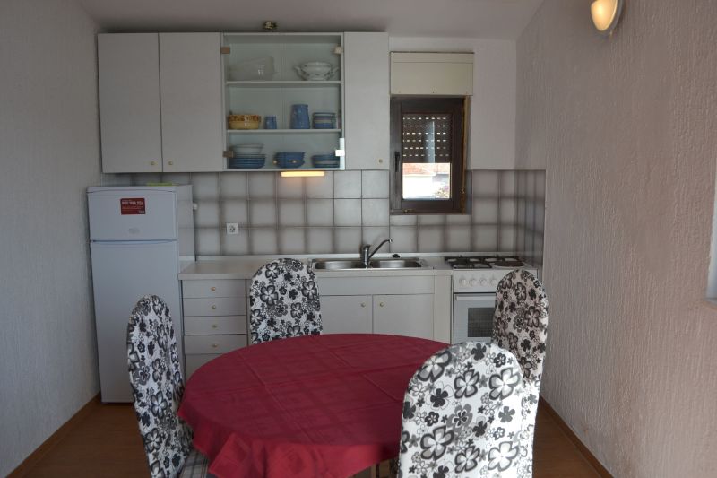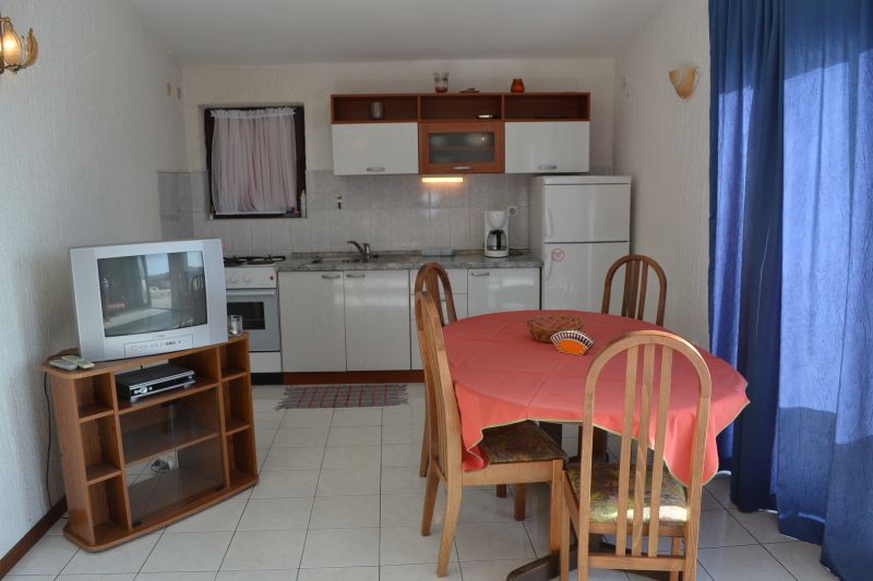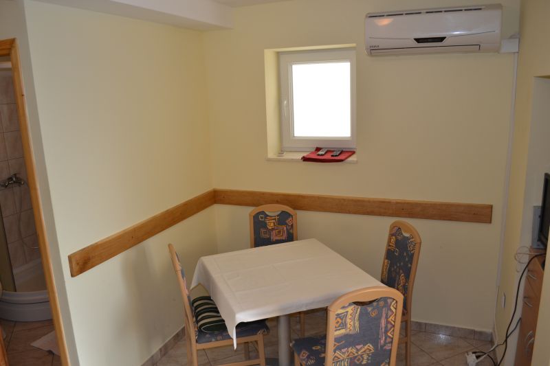 | Studio 2+1 ´A2´ (103010402) Umístění: 3. patro Počet místností: 1 Počet osob: max. 3 | | Prostor na spaní: manželská postel, pohovka na rozložení pro 1 osobu, TV/SAT, klimatizace | | Kuchyňský kout: plynový i elektrický sporák, lednička s mrazákem, překapávač kávy, stůl, 4x židle | | Koupelna: sprchový kout, WC | | Terasa: posezení pro 3 osoby, sušák na prádlo, 2x lehátko Výhled na moře: ano | | Klimatizace: ano (5 € / den) Internet: ano (zdarma)