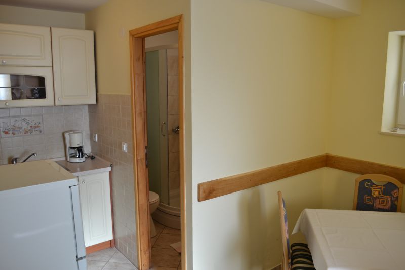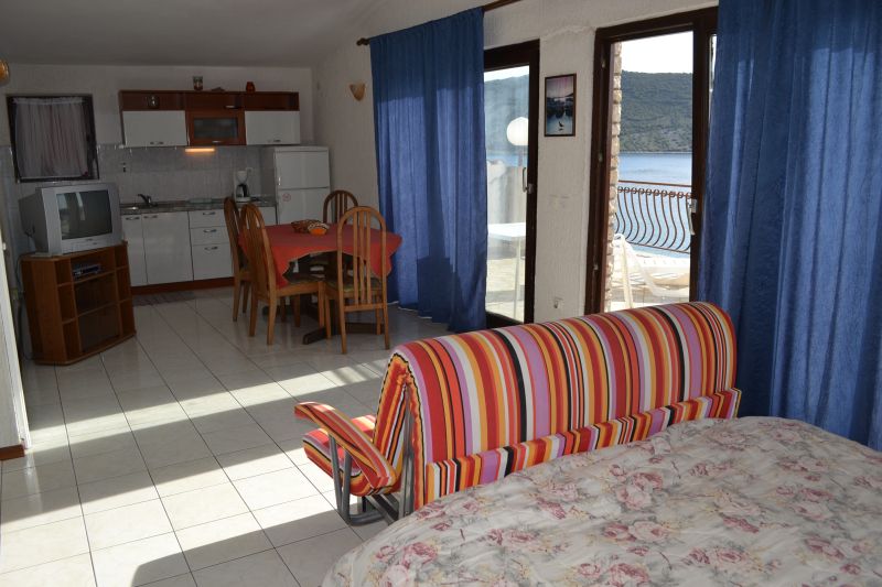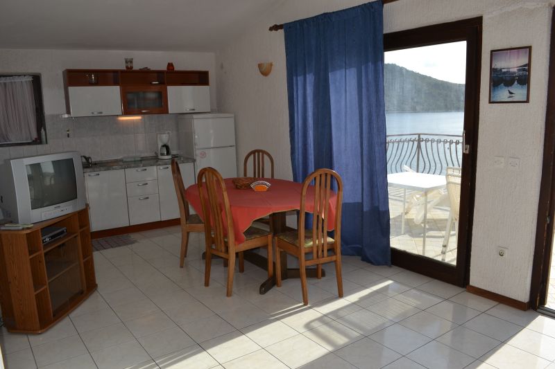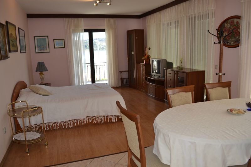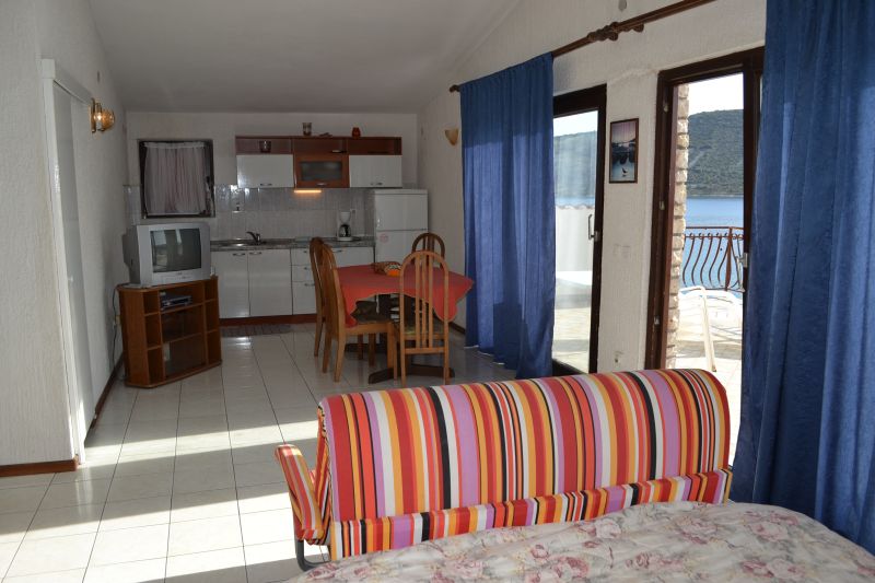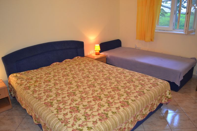 | APP 2+1 ´A3´ (103010403) Umístění: 1. patro Počet místností: 2 Počet osob: max. 3 | | Ložnice: samostatná postel, skříň | | Obývací pokoj s kuchyňským koutem: manželská postel, TV/SAT | | Kuchyňské vybavení: plynový i elektrický sporák, trouba, lednička s mrazákem, stůl, 6x židle | | Koupelna: sprchový kout, WC | | Krytá terasa: posezení pro 6 osob, sušák na prádlo Výhled na moře: ano | | Klimatizace: ano (5 € / den) Internet: ano (zdarma)
