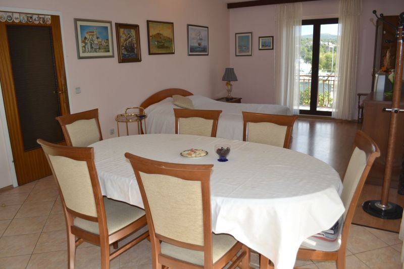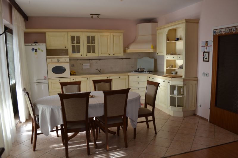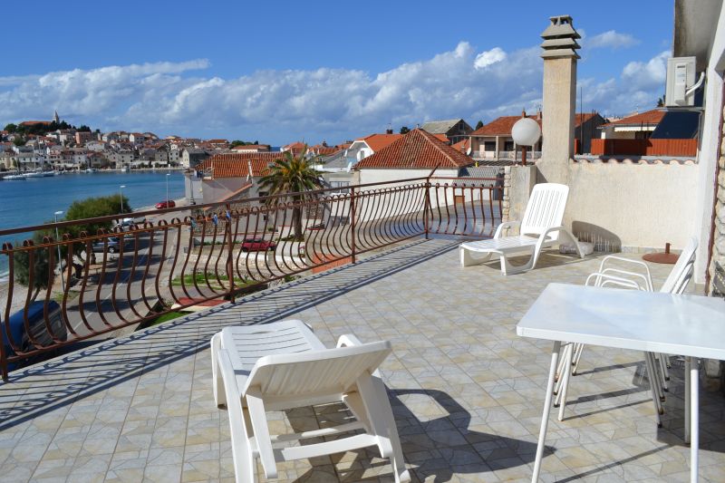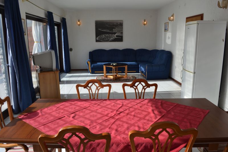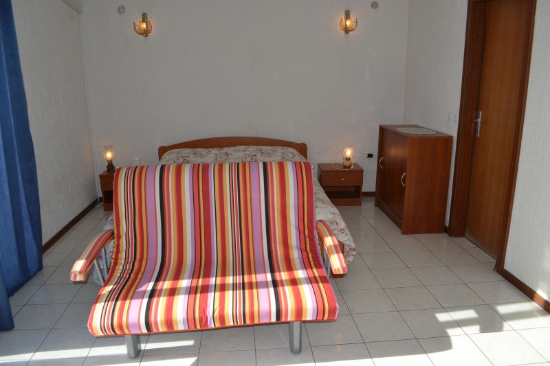 | APP 6+2 ´A5´ (103010405) Umístění: 2. patro Počet místností: 4 Počet osob: max. 8 | | 3x Ložnice: manželská postel, skříň | | Obývací pokoj s kuchyňským koutem: pohovka na rozložení pro 2 osoby, TV/SAT, klimatizace | | Kuchyňské vybavení: elektrický sporák, trouba, 2x lednička s mrazákem, překapávač kávy, toaster, stůl, 6x židle | | 4x Koupelna: vana x sprchový kout, WC | | Terasa: posezení pro 8 osob, šňůra na prádlo, slunečník Výhled na moře: ano | | Klimatizace: ano (5 € / den) Internet: ano (zdarma)