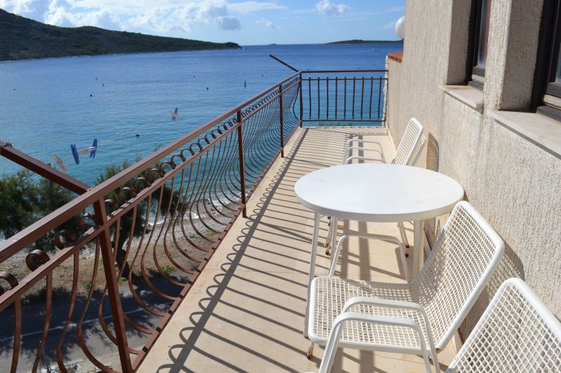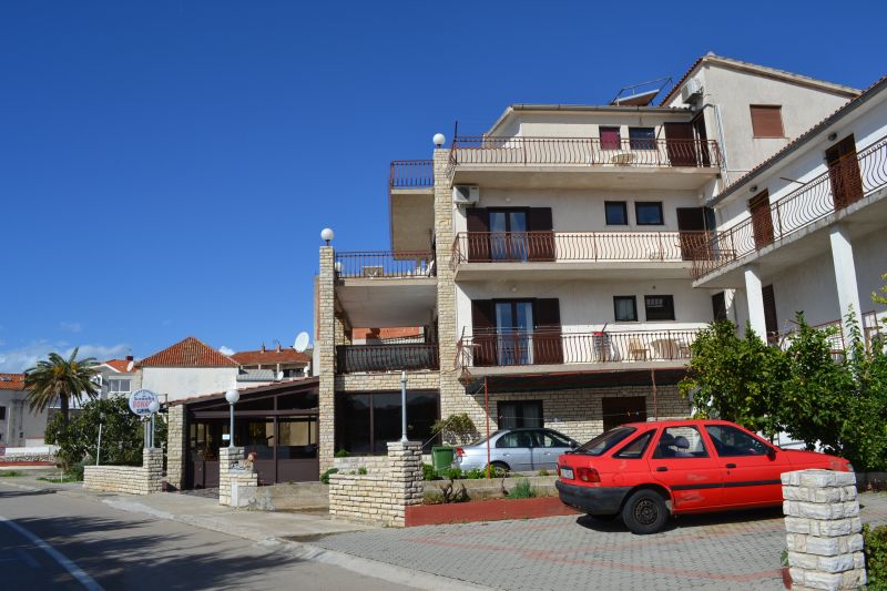 | Stručné informace: | | | Vzdálenost od moře | 15 m | | Vzdálenost od pláže | 15 m | | Typ pláže | oblázková | | Vzdálenost od centra | 100 m | | Nejbližší obchod | 50 m | | Nejbližší restaurace | v objektu | | Objekt disponuje: | | | TV/SAT | ano | | Klimatizace | ano, 5 € / den | | Internet | ano, zdarma | | Povlečení | ano, 1 x za pobyt | | Ručníky | ano, 1 x za pobyt | | Taoletní papír | ano, 1 x za pobyt | | APP 2+1 ´A1´ (103010401) Umístění: Přízemí Počet místností: 2 Počet osob: max. 3 | | Ložnice: manželská postel, samostatná postel, skříň | | Obývací pokoj s kuchyňským koutem: LCDTV/SAT, klimatizace | | Kuchyňské vybavení: elektrický sporák, trouba, lednička s mrazákem, překapávač kávy, stůl, 4x židle | | Koupelna: sprchový kout, WC | | Terasa: posezení pro 3 osoby, sušák na prádlo Výhled na moře: ano | | Klimatizace: ano (5 € / den) Internet: ano (zdarma)