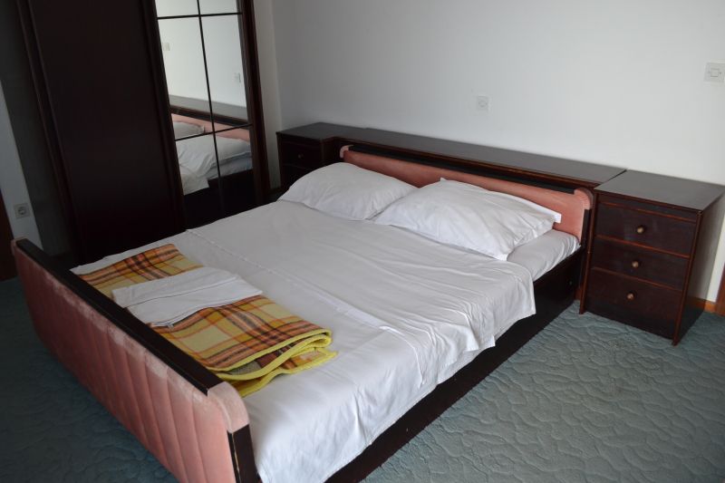 | APP 4 ´A4´ (103010404) Umístění: 3. patro Počet místností: 3 Počet osob: max. 4 | | 2x Ložnice: manželská postel, skříň | | Obývací pokoj s kuchyňským koutem: TV/SAT, klimatizace | | Kuchyňské vybavení: plynový i elektrický sporák, trouba, lednička s mrazákem, stůl, 4x židle | | 2x Koupelna: sprchový kout, WC | | Krytá terasa: posezení pro 4 osoby, sušák na prádlo Výhled na moře: ano | | Klimatizace: ano (5 € / den) Internet: ano (zdarma)