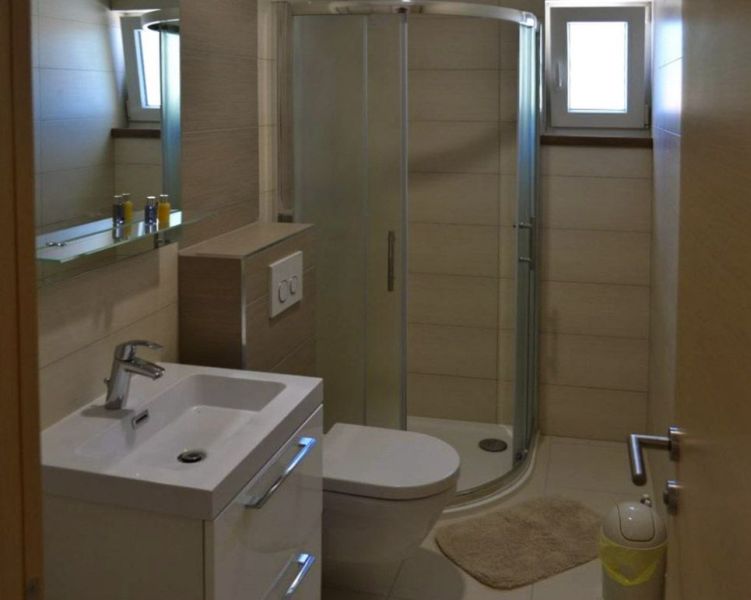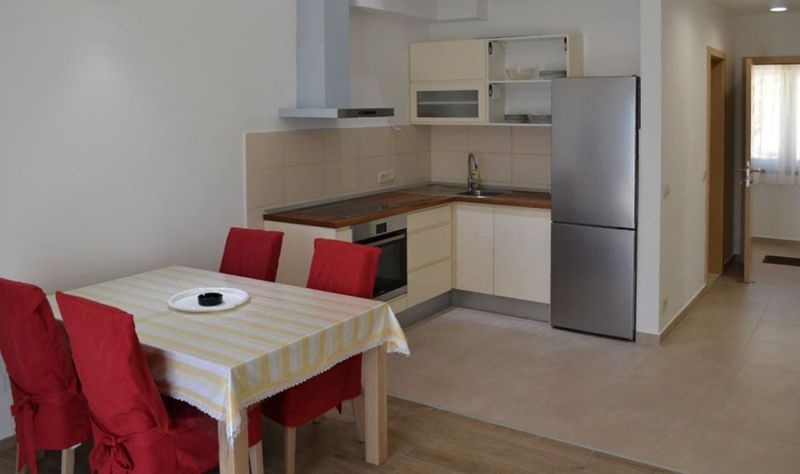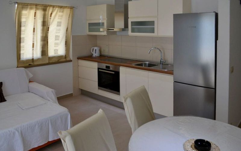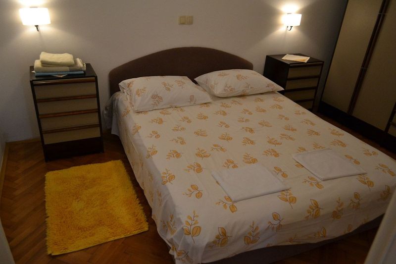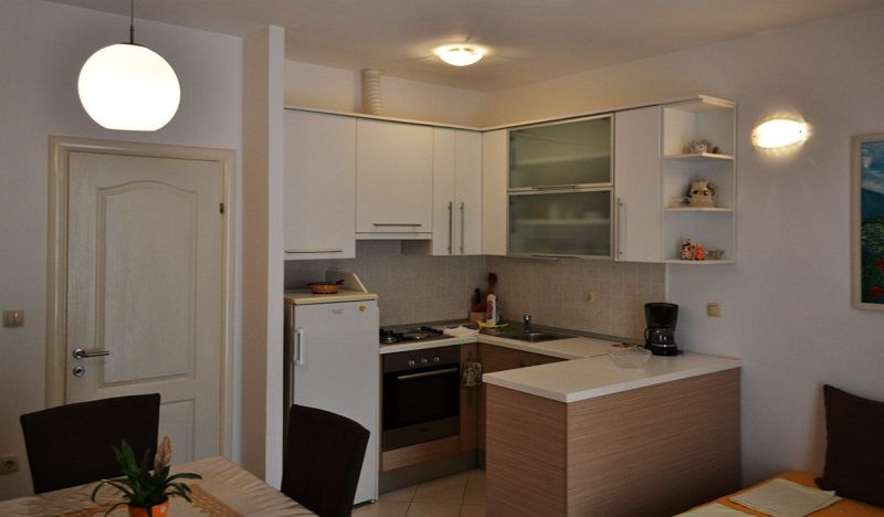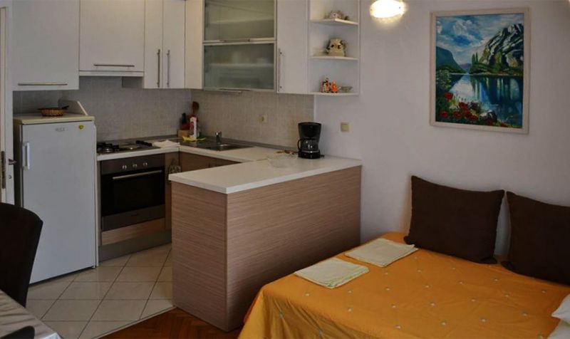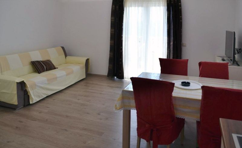 | APP 2+2 ´L2´ (201010302) Umístění: 3. patro Počet místností: 2 Počet osob: max. 4 | | Ložnice: manželská postel, skříň | | Obývací pokoj s kuchyňským koutem: pohovka na rozložení pro 2 osoby, LCDTV/SAT, klimatizace | | Kuchyňské vybavení: elektrický sporák, trouba, lednička s mrazákem, stůl, 4x židle | | Koupelna: sprchový kout, WC | | Terasa: posezení pro 4 osoby, markýza Výhled na moře: ano | | Klimatizace: ano (5 € / den) Internet: ano (zdarma)