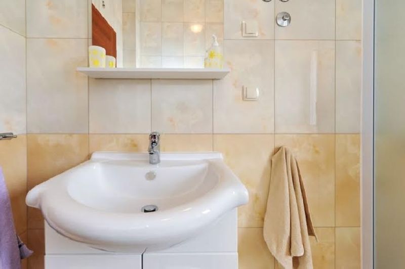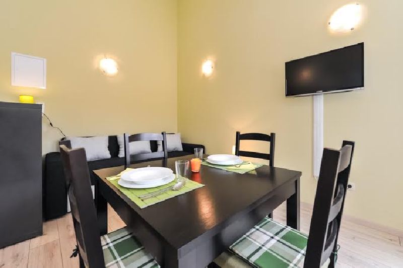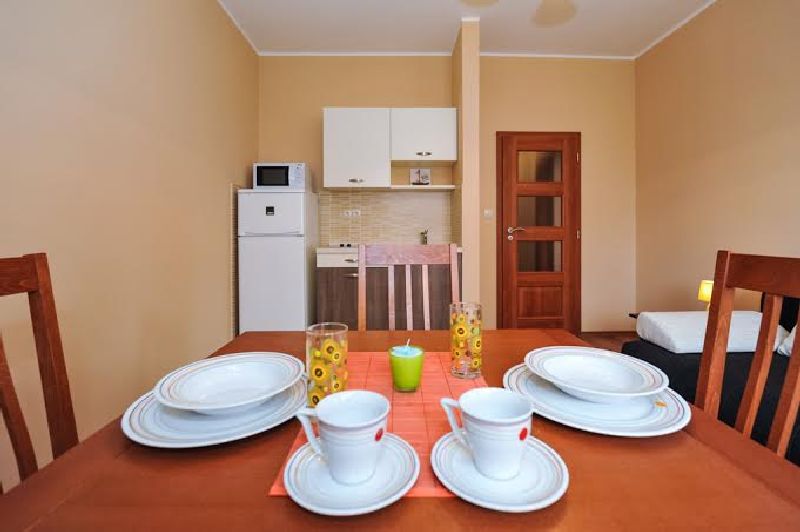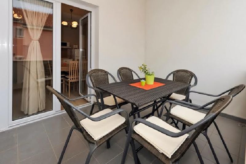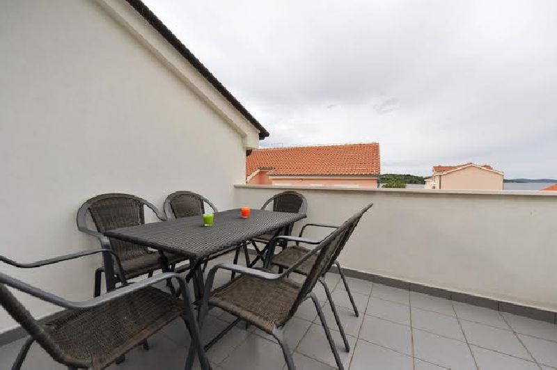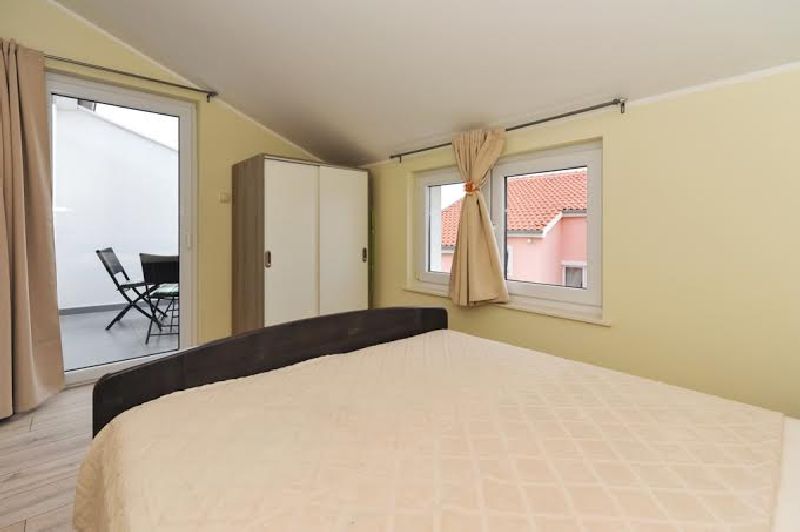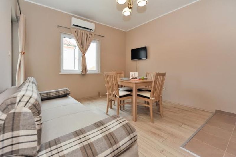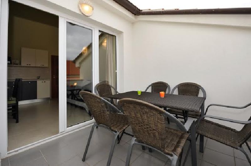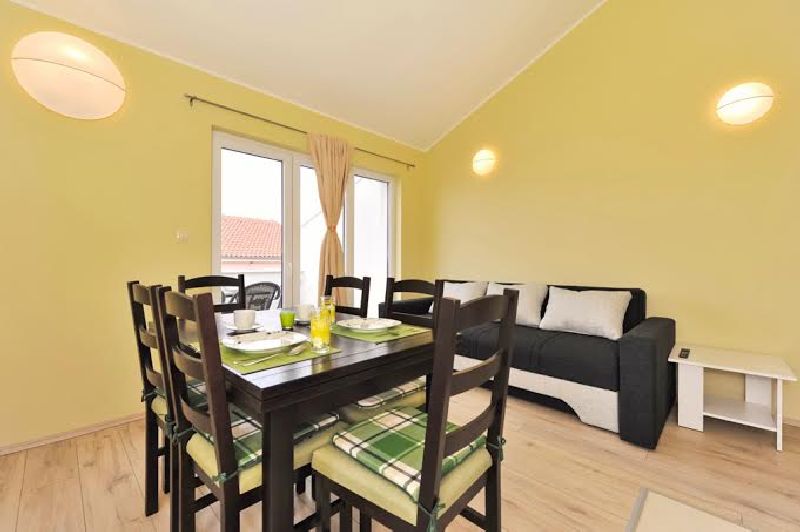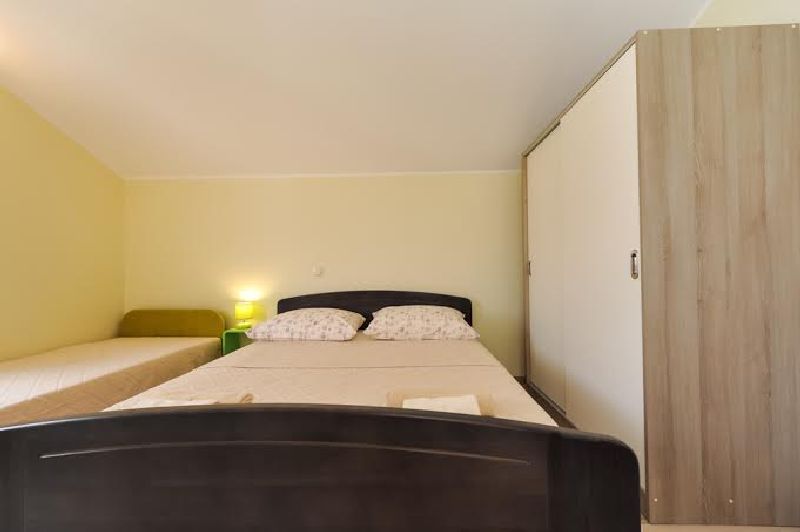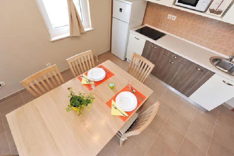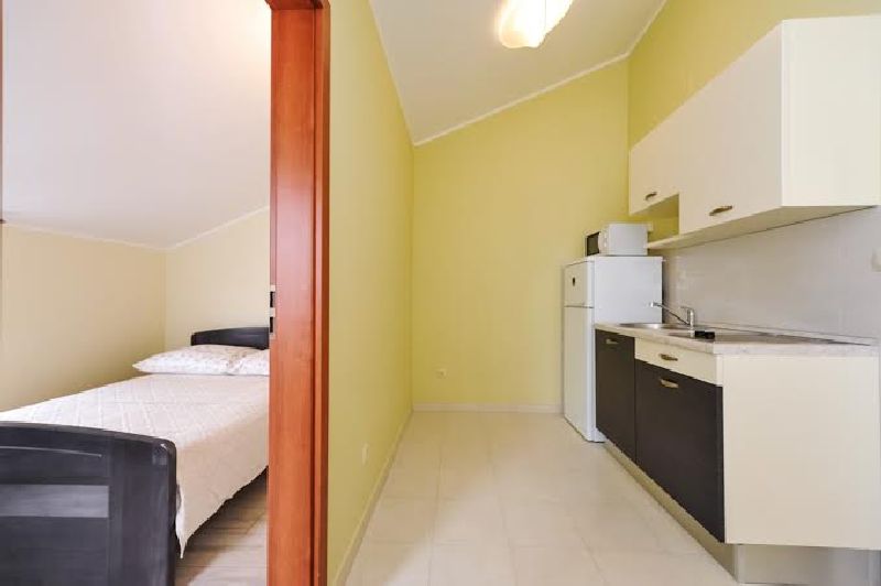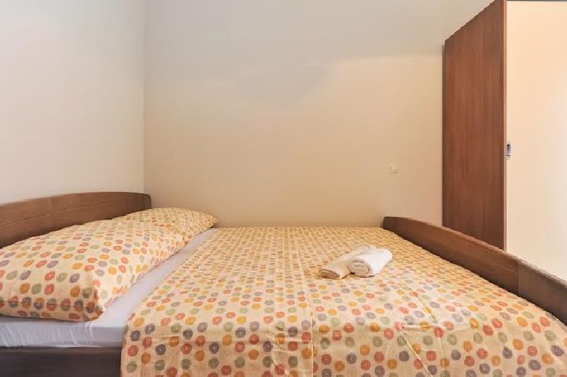 | Stručné informace: | | | Vzdálenost od moře | 70 m | | Vzdálenost od pláže | 70 m | | Typ pláže | oblázková | | Vzdálenost od centra | 400 m | | Nejbližší obchod | 100 m | | Nejbližší restaurace | 100 m | | Objekt disponuje: | | | TV/SAT | ano | | Klimatizace | ano, zdarma | | Internet | ano, zdarma | | Povlečení | ano, 1 x za pobyt | | Ručníky | ano, 1 x za pobyt | | Taoletní papír | ano, 1 x za pobyt | | APP 4+2 "1" (103101301) Umístění: Přízemí Počet místností: 3 Počet osob: max. 6 | | 2x Ložnice: manželská postel, skříň | | Obývací pokoj s kuchyňským koutem: pohovka na rozložení pro 2 osoby, LCDTV/SAT, klimatizace | | Kuchyňské vybavení: elektrický sporák, lednička s mrazákem, mikrovlnka, stůl, 6x židle | | Koupelna: sprchový kout, WC | | Terasa: posezení pro 6 osob Výhled: obec | | Klimatizace: ano (zdarma) Internet: ano (zdarma)