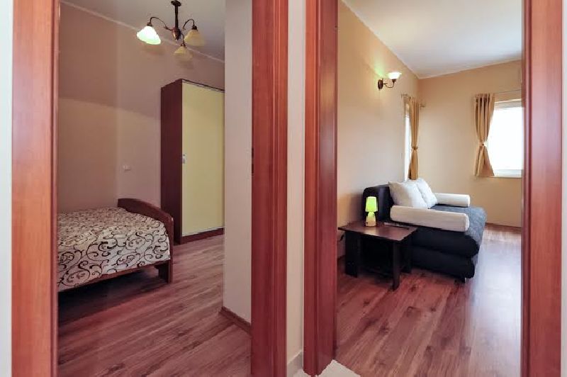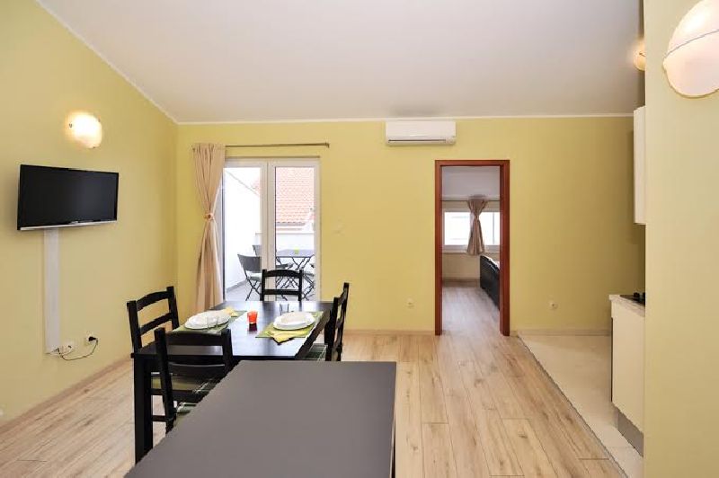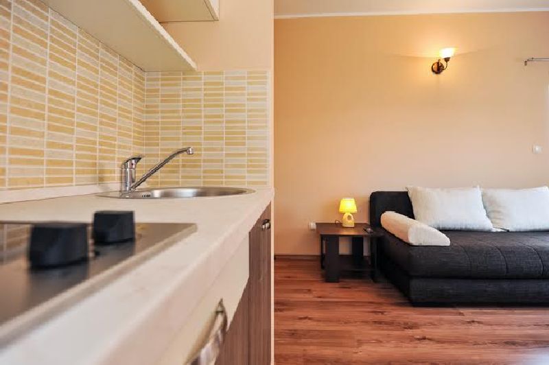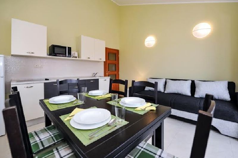 | APP 2+2 "6" (103101306) Umístění: 1. patro Počet místností: 2 Počet osob: max. 4 | | Ložnice: manželská postel, skříň | | Obývací pokoj s kuchyňským koutem: pohovka na rozložení pro 2 osoby, LCDTV/SAT, klimatizace | | Kuchyňské vybavení: elektrický sporák, trouba, lednička s mrazákem, mikrovlnka, stůl, 4x židle | | Koupelna: sprchový kout, WC | | Terasa: posezení pro 4 osoby Výhled: obec | | Klimatizace: ano (zdarma) Internet: ano (zdarma)