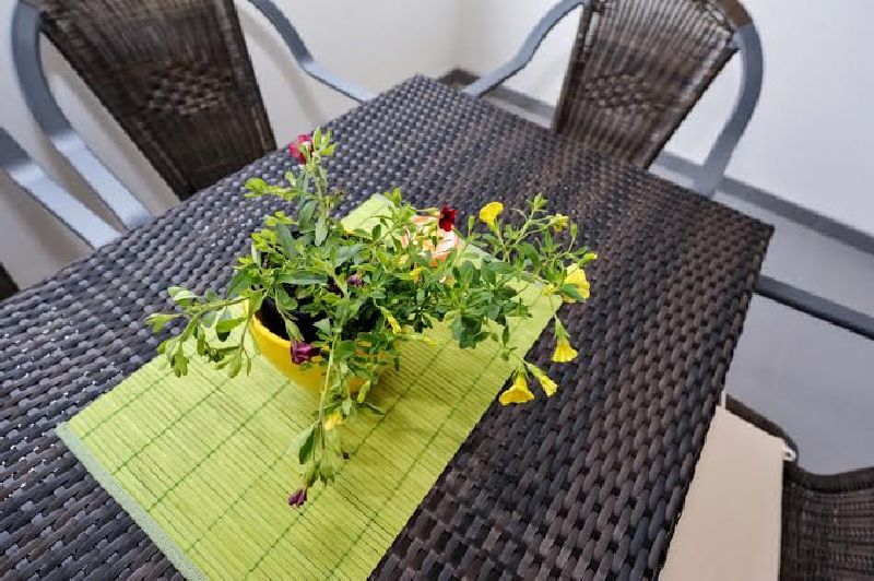 | APP 2+2 "3" (103101303) Umístění: Přízemí Počet místností: 2 Počet osob: max. 4 | | Ložnice: manželská postel, skříň | | Obývací pokoj s kuchyňským koutem: pohovka na rozložení pro 2 osoby, LCDTV/SAT, klimatizace | | Kuchyňské vybavení: elektrický sporák, trouba, lednička s mrazákem, mikrovlnka, stůl, 4x židle | | Koupelna: sprchový kout, WC | | Terasa: posezení pro 4 osoby Výhled: obec | | Klimatizace: ano (zdarma) Internet: ano (zdarma)