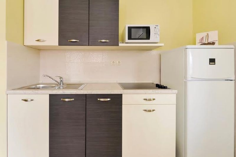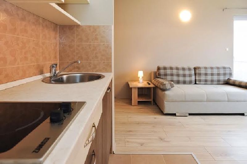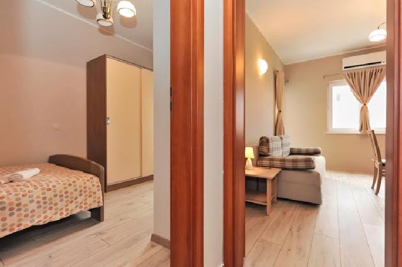 | APP 2+2 "8" (103101308) Umístění: 2. patro Počet místností: 2 Počet osob: max. 4 | | Ložnice: manželská postel, skříň | | Obývací pokoj s kuchyňským koutem: pohovka na rozložení pro 2 osoby, LCDTV/SAT, klimatizace | | Kuchyňské vybavení: elektrický sporák, trouba, lednička s mrazákem, mikrovlnka, stůl, 4x židle | | Koupelna: sprchový kout, WC | | Terasa: posezení pro 4 osoby Výhled: obec | | Klimatizace: ano (zdarma) Internet: ano (zdarma)