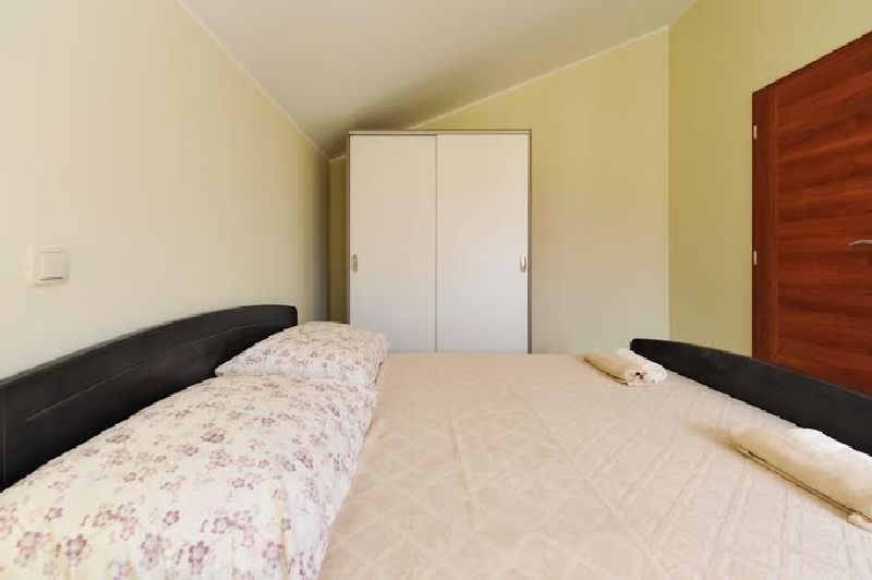 | APP 4+2 "7" (103101307) Umístění: 2. patro Počet místností: 3 Počet osob: max. 6 | | 2x Ložnice: manželská postel, skříň | | Obývací pokoj s kuchyňským koutem: pohovka na rozložení pro 2 osoby, LCDTV/SAT, klimatizace | | Kuchyňské vybavení: elektrický sporák, lednička s mrazákem, mikrovlnka, stůl, 6x židle | | Koupelna: sprchový kout, WC | | Terasa: posezení pro 6 osob Výhled: obec | | Klimatizace: ano (zdarma) Internet: ano (zdarma)